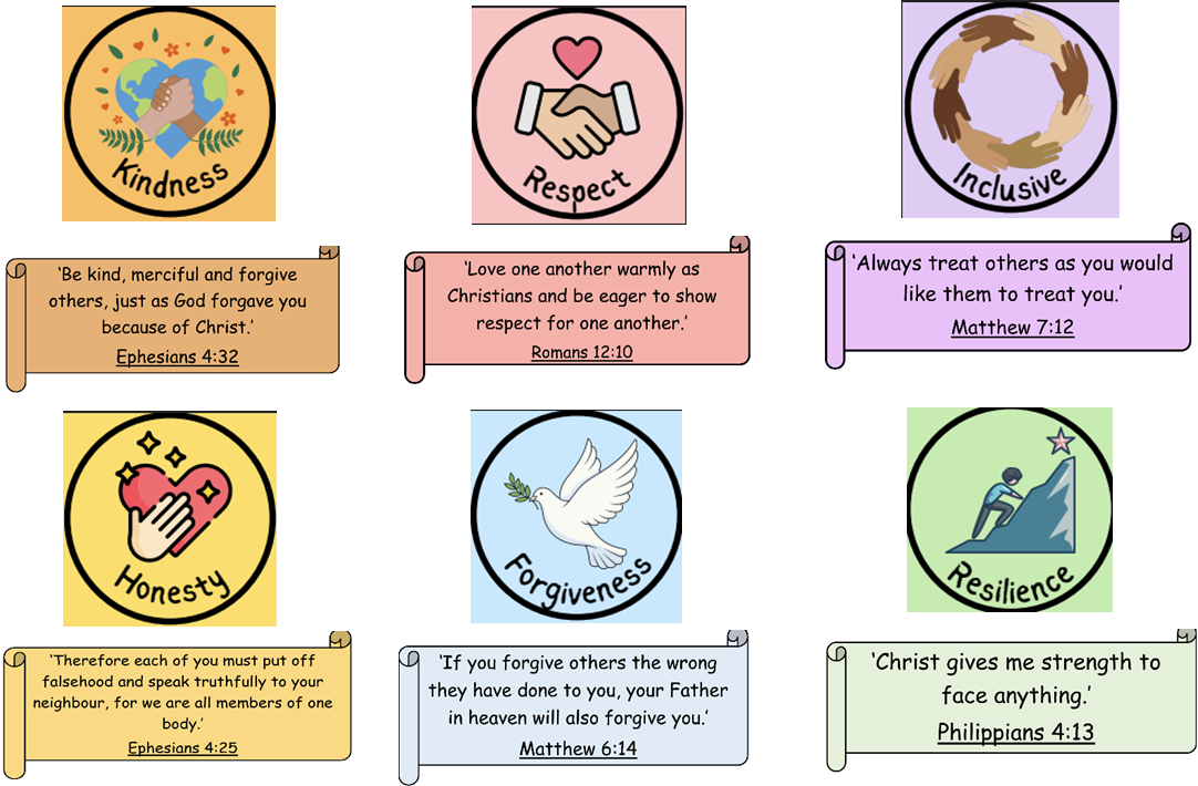 We actively promote our charism by integrating Catholic values into the curriculum and wider school life. Our school values, Kindness, Respect, iInclusive, Forgiveness, Honesty and Resilience, are celebrated and recognised through weekly achievement assembly. These values underpin all that we do and shape the way we learn, grow and treat one another.