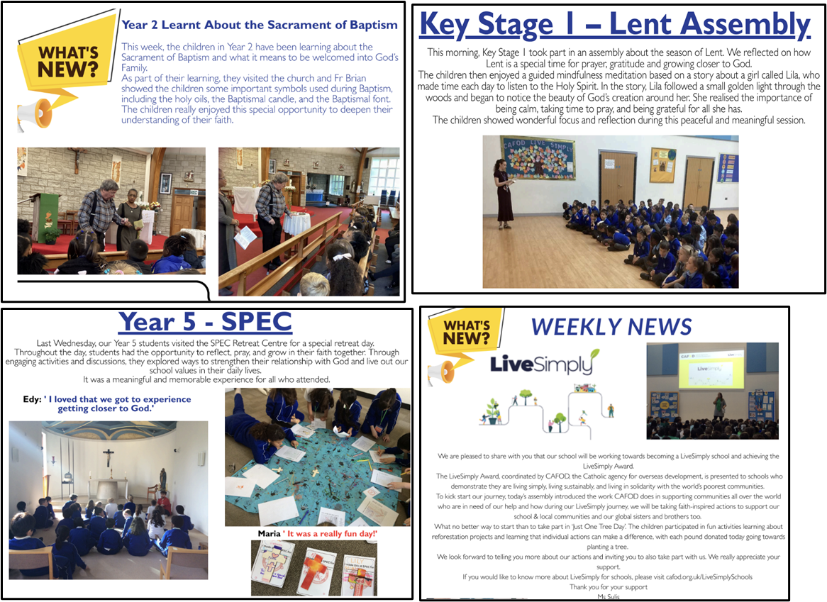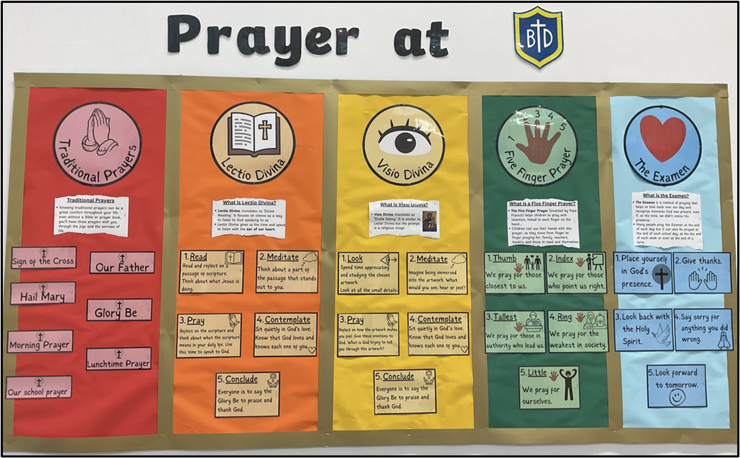 We place great importance on the spiritual development of our pupils. Through prayer, reflection, liturgy, and participation in the life of the Church, children are supported in developing a personal relationship with God.