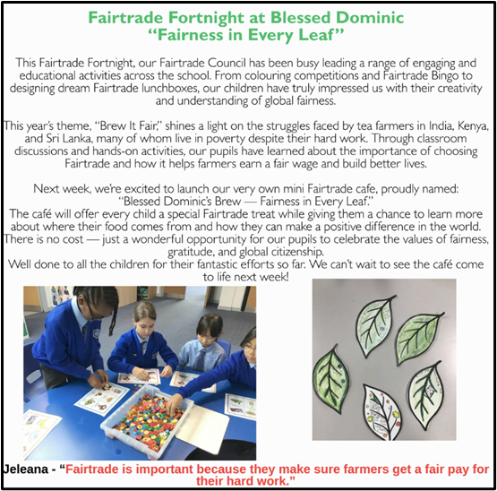 Inspired by Catholic Social Teaching, we encourage our pupils to serve others and stand up for justice. Through charitable activities and community initiatives, children learn the importance of compassion, responsibility and action.
